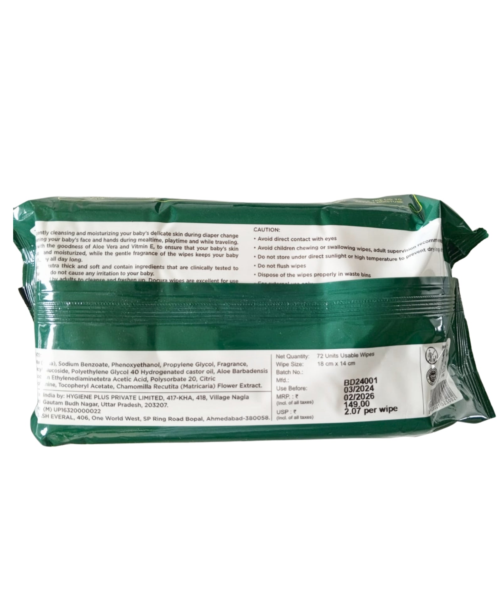 - દૈનિક આનંદ: રોજિંદા ઉપયોગ માટે પર્યાપ્ત નમ્ર, ડોક્યુરા બેબી વાઇપ્સ તમારા બાળકની દિનચર્યામાં હળવા સ્પર્શ લાવે છે. દરેક સ્વાઇપ એ લાડની ક્ષણ છે, જે તમારા બાળકની આખો દિવસ આરામની ખાતરી કરે છે.
