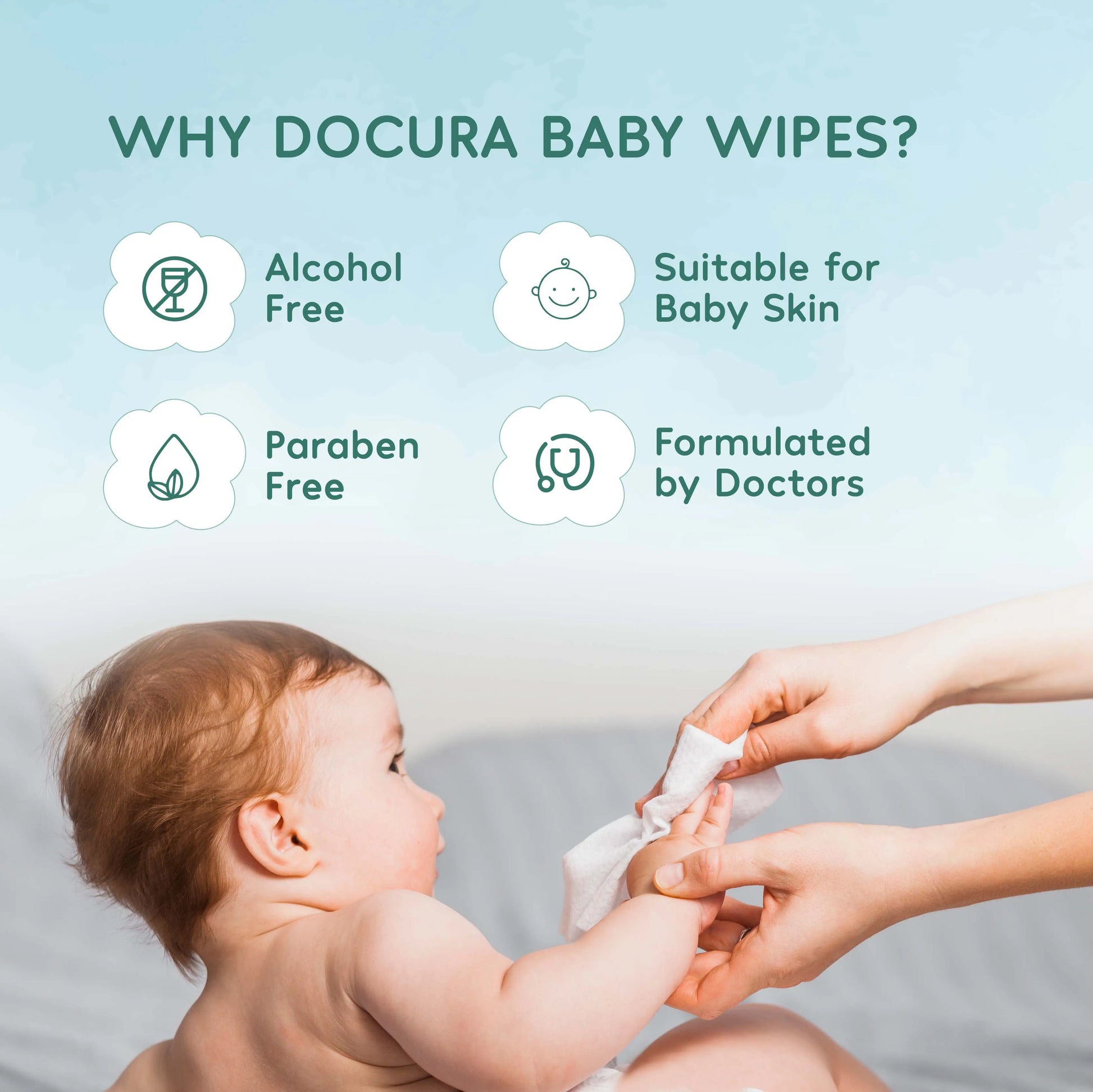 બાળરોગ ચિકિત્સકો દ્વારા નિપુણતાથી ક્યુરેટેડ અને કુદરતના શ્રેષ્ઠ ઘટકોથી સમૃદ્ધ, ડોક્યુરા બેબી વાઇપ્સ તમારા બાળક અને તમારા સમગ્ર પરિવાર માટે સલામતીને પ્રાથમિકતા આપે છે.