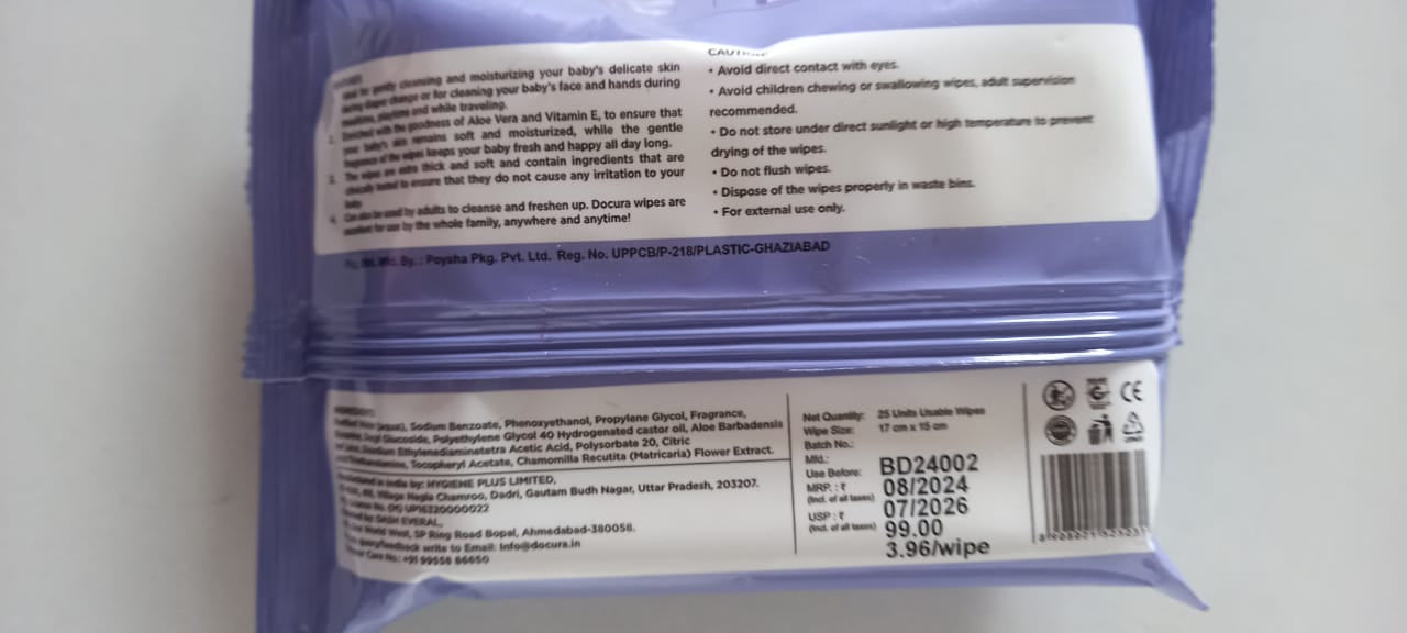 અનુકૂળ પેક તમને આ વાઇપ્સને તમે જ્યાં પણ જાઓ ત્યાં લઈ જવાની મંજૂરી આપે છે, જેથી તમારું બાળક આખો દિવસ તાજું અને સ્વચ્છ રહે. તેમના સુખદાયક અને પૌષ્ટિક ગુણધર્મો સાથે, ડોક્યુરા બેબી વાઇપ્સ તમારા બાળકને સ્વચ્છ અને સામગ્રી રાખવા માટે મુશ્કેલી-મુક્ત ઉકેલ પ્રદાન કરે છે.
